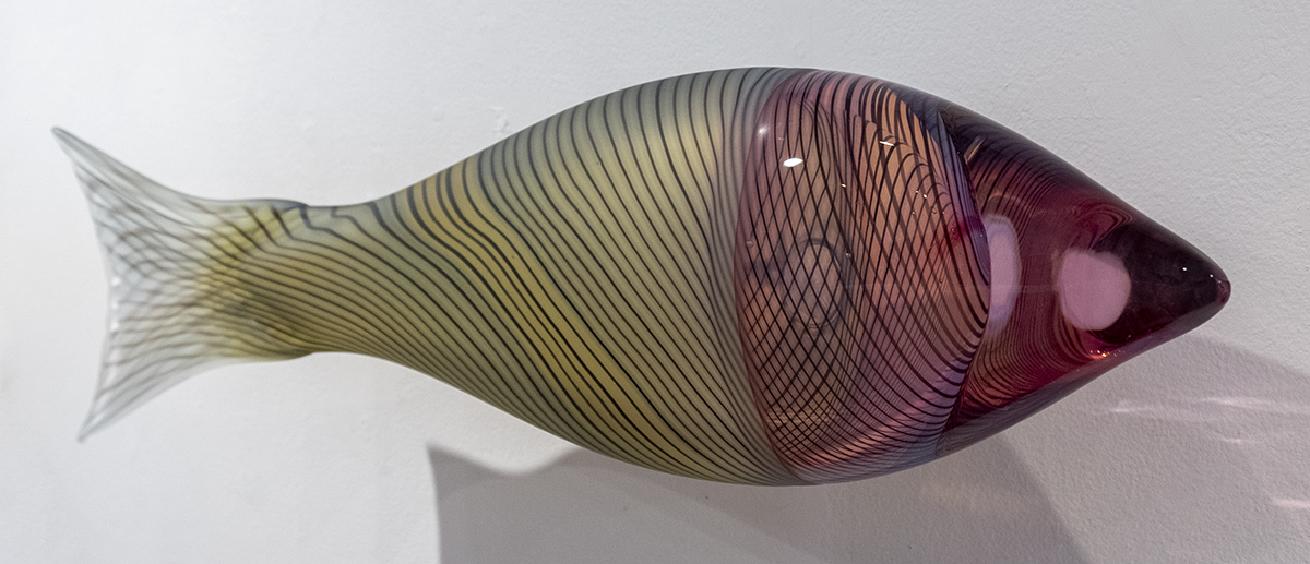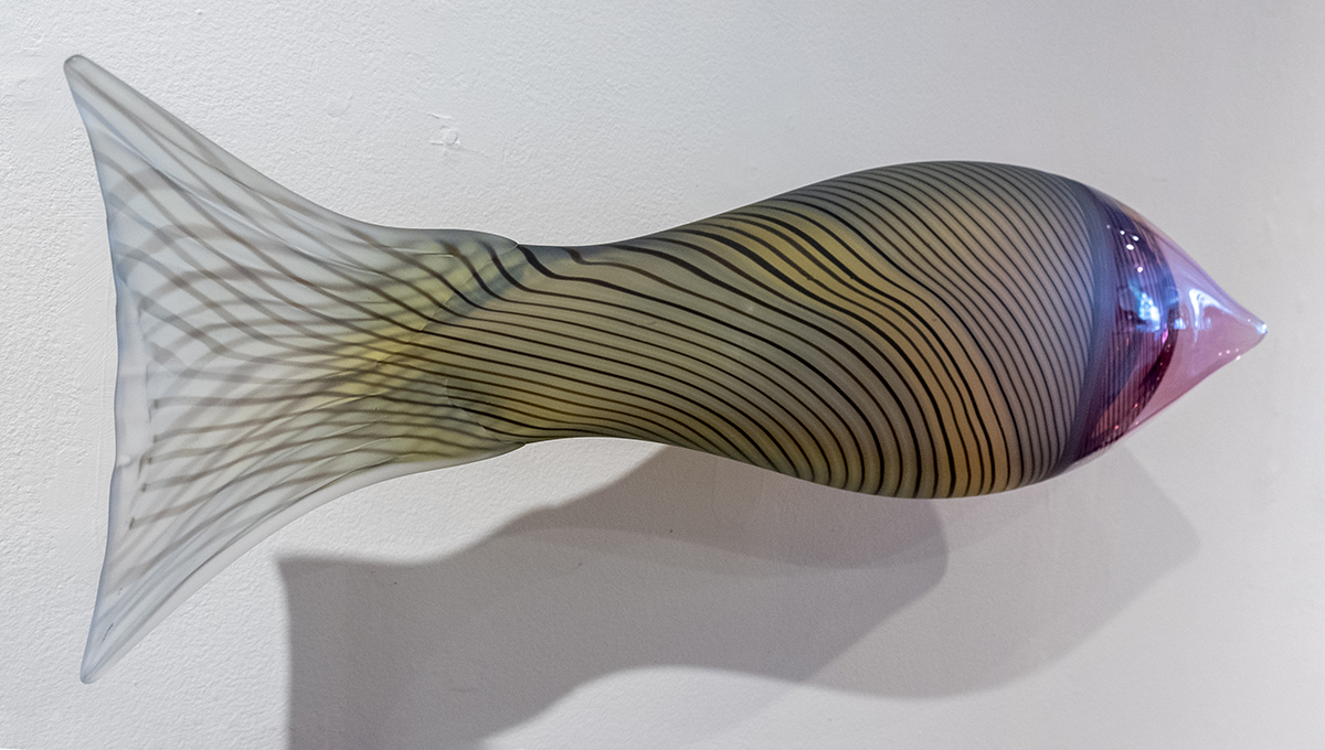 Blown, Hot-Sculpted and Sandblasted Glass, Metal Brackets