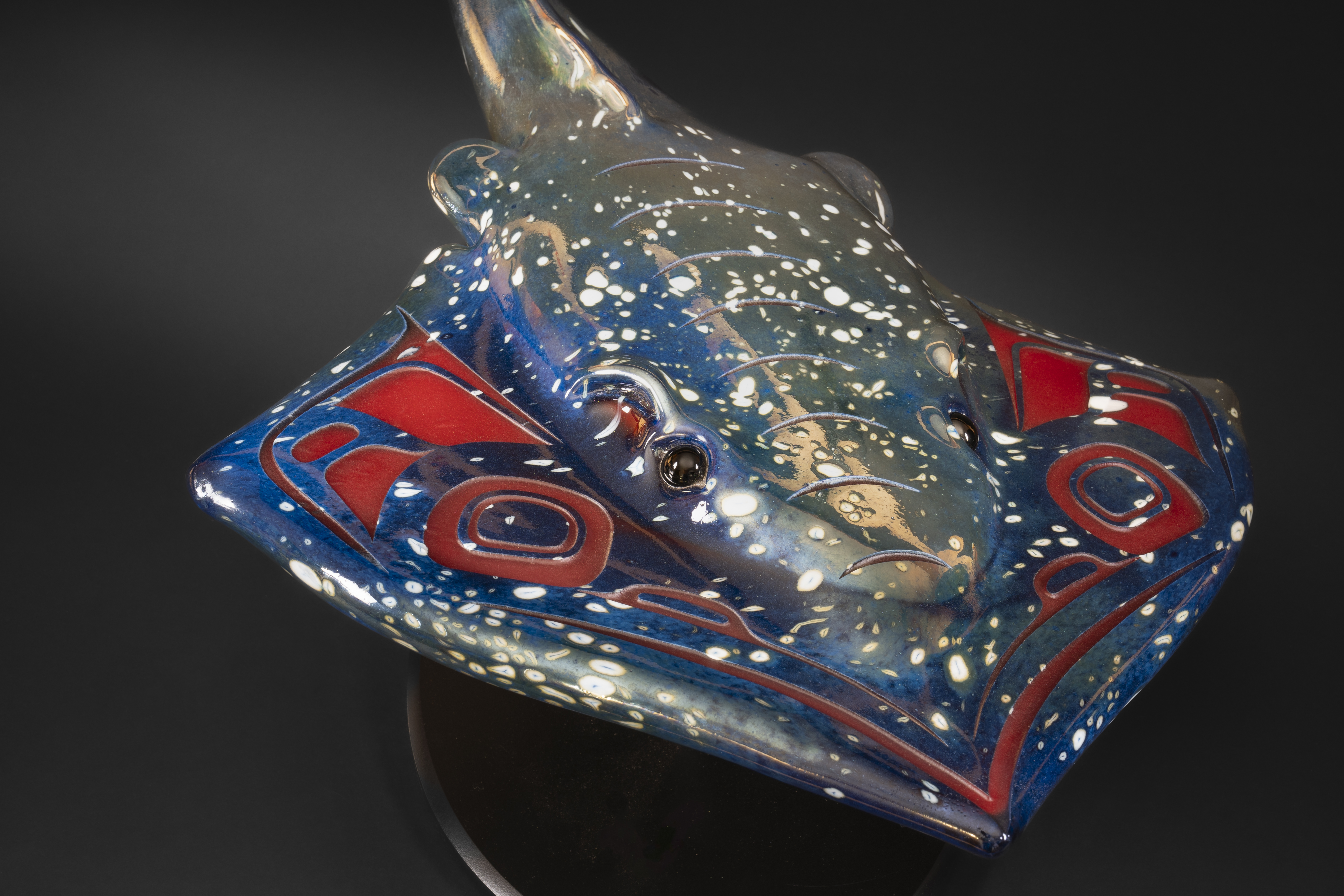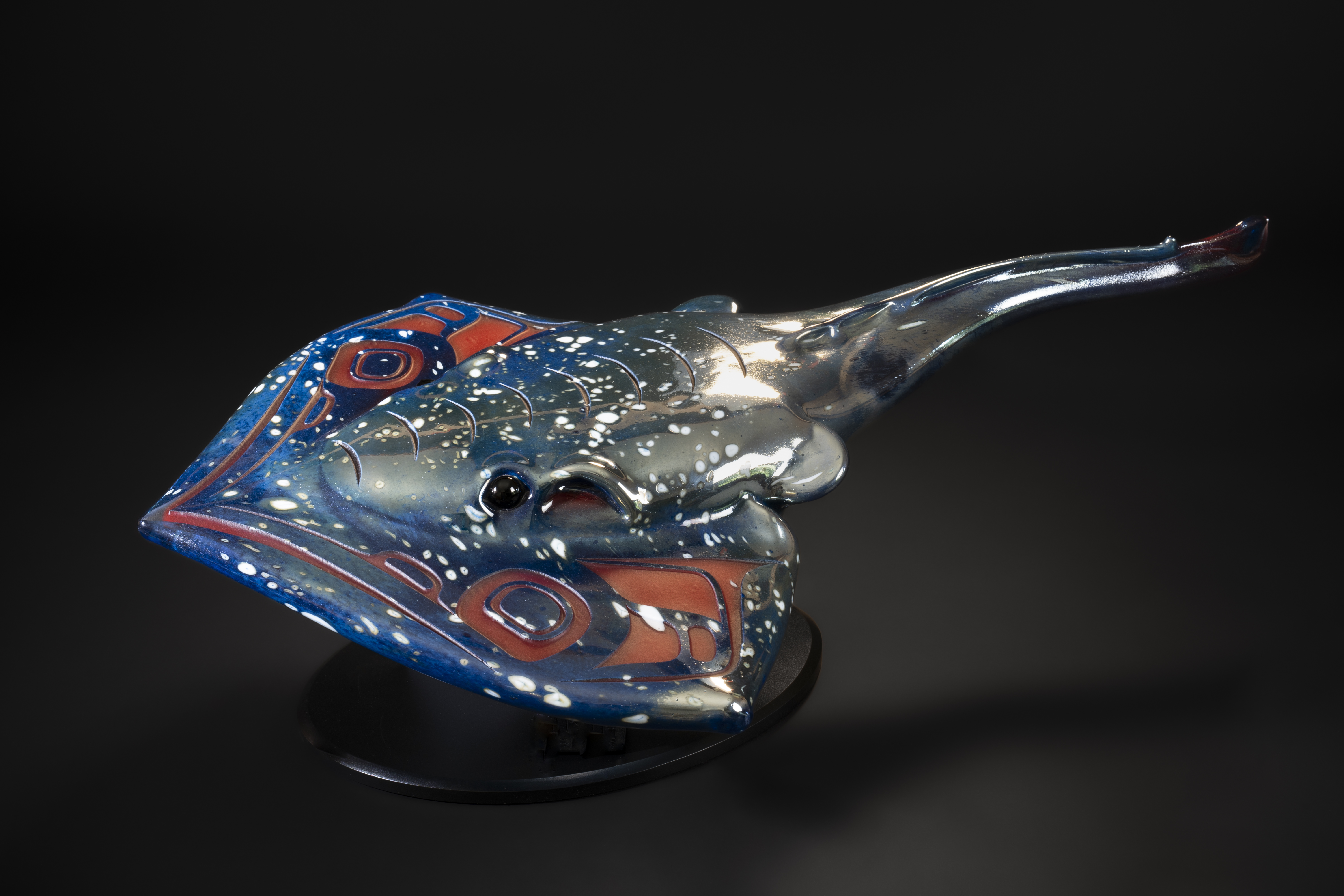 Free Hand Sculpted and Carved Glass, Metal Stand