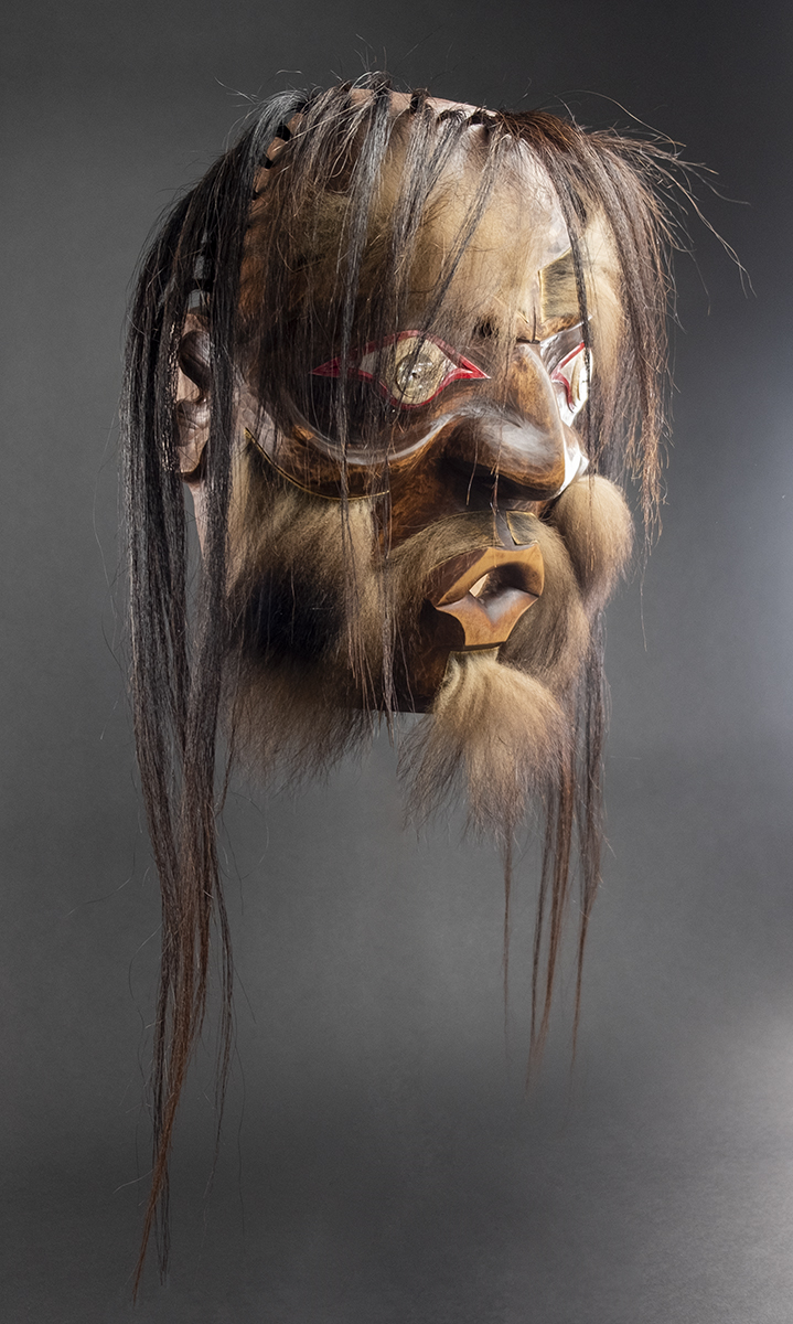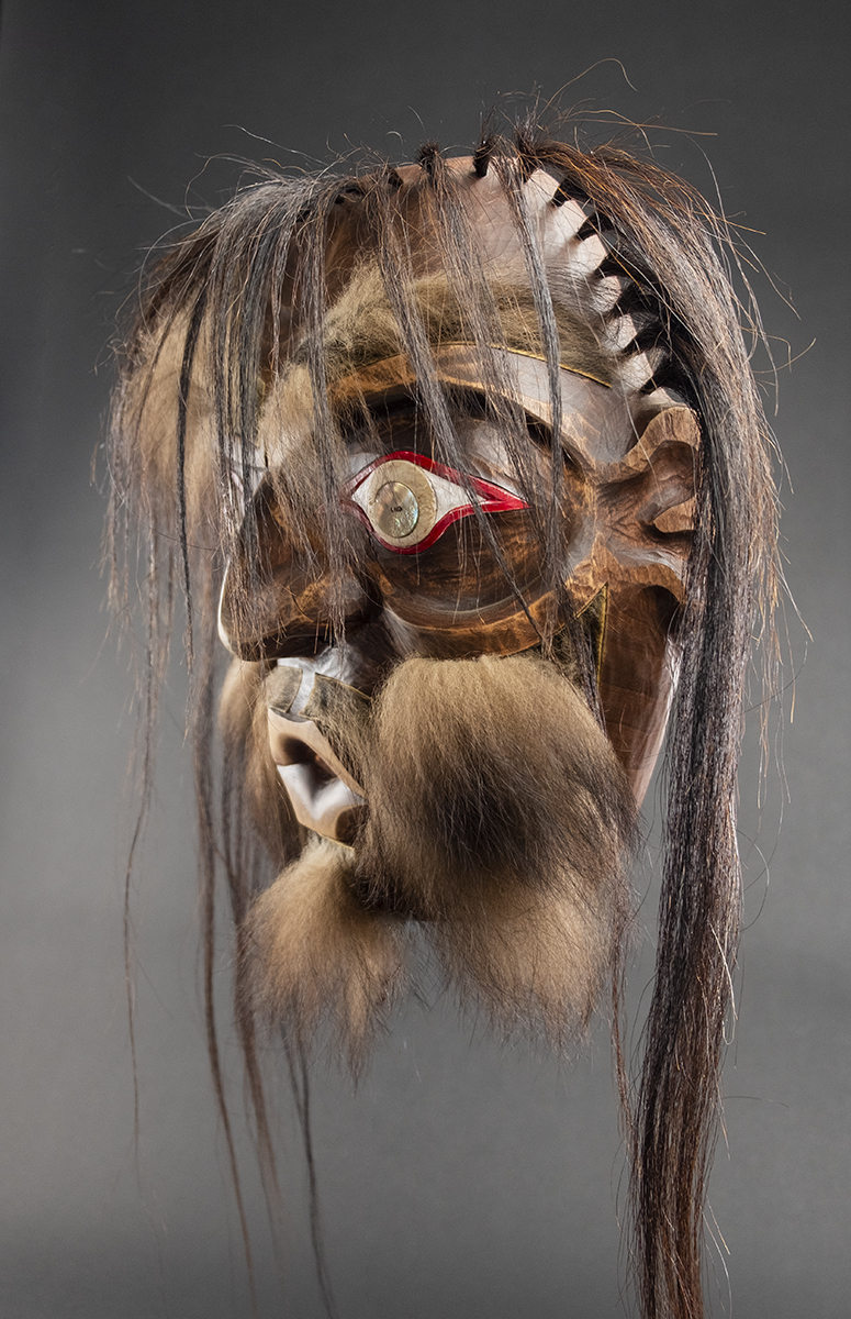 Alder, Abalone, Stain, Acrylic, Oil, Horse Hair, Black Bear Fur, Bison Bone