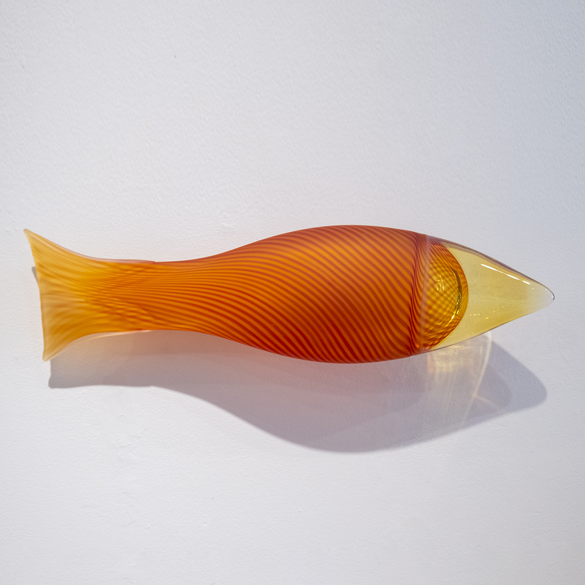 Dan FridayOrange Glass Salmon with Yellow NoseBlown, Hot-Sculpted and Sandblasted Glass, Metal Brackets